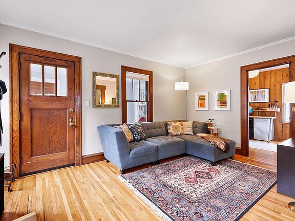 Welcome to this charm-filled 3-Bedroom, 2-Bath stucco gem, just a short walk to the creek and lakes. Watch the changing seasons from the inviting front porch. Entertain with style and grace in the handsome living room, offering sunny windows to bathe the space in natural light. Lovely hardwood floors & rich natural woodwork extend seamlessly from the living room to the formal dining room. The dining room is accented with a beautiful built-in buffet and charming window seat. The sun-splashed kitchen features sleek white cabinetry with open shelving, hardwood floors, track lighting and butcher block countertops. The flexible main floor bedroom can easily function as a home office or a den to suit the changing needs of your household. Travel up to find two well-proportioned bedrooms & a full bath with deep soaking tub. Future living potential in the lower level, with a spa-like three-quarter bath. Fenced yard with deck, lovely gardens with native perennials for pollinators. H2O new 2021!