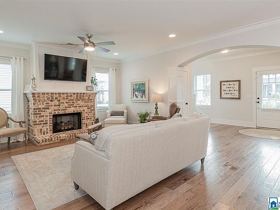 BEAUTIFUL home in Trussvilles HOT SPOT! This GORGEOUS Hickory plan is one of the most popular designs and its FULL OF UPGRADES! Double porches on the front, reminiscent of Charleston, PLUS covered back patio in FENCED backyard. OPEN FLOOR PLAN on main level with hardwood floors and features exposed BRICK WALL in dining room, gas fireplace with BRICK surround in living room and a DESIGNER kitchen with GAS stove and QUARTZ countertops. Master suite on main level, has owner added, custom WAINSCOTING as an ACCENT wall, and ZERO ENTRY SHOWER in master bath. Large laundry room and half bath also on the main level. Upstairs are three bedrooms, a full bathroom and LARGE BONUS room with built in shelving. MAIN level garage, sprinkler system, and so much more. This home is CLEAN and full of LIGHT! Live like youre on VACATION in Stockton with two community POOLS, multiple play areas, sidewalks and streetlights. This WELL APPOINTED home is nothing short of a DELIGHT!