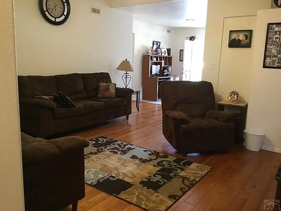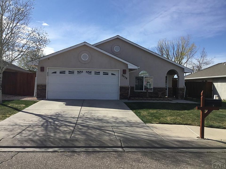 This Beautiful Domega Rancher with 3 bedrooms, 2 baths, 2 car garage is just waiting for a new owner to enjoy all it has to offer. This home features Stone Veneer in the front of home, a private covered front porch. Vaulted ceiling, hardwood and tile floors. Many options for use of area off main living room can be your office, game room, TV/Family room. Atrium doors to go out and enjoy covered patio with outdoor fan and cement bar that stays. The yard has beautiful landscaping and features beautiful Aspen trees, bushes and a brick stone wall fireplace. Pride of Ownership is displayed in this well kept home.