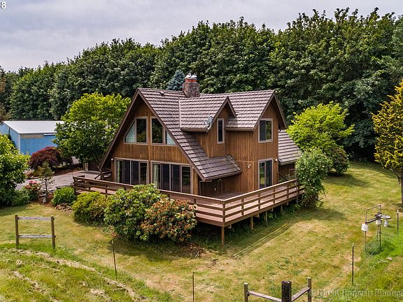 This one is special and so is the location! Views, easy commute to PDX, 5 acres, large shop and multiple outbuildings, room for livestock, RV's or build your own "Field of Dreams"! This A frame chalet style home has 3BR, 2.5BA, mud room/laundry room, 2 car garage, master on the main fully remodeled kitchen and 2 fireplaces. A lifetime metal tile roof, beautifully updated windows show pride of ownership. Newer fencing around both pastures and recent land survey. Mature landscaping and a breathtaking view; river and mountains.