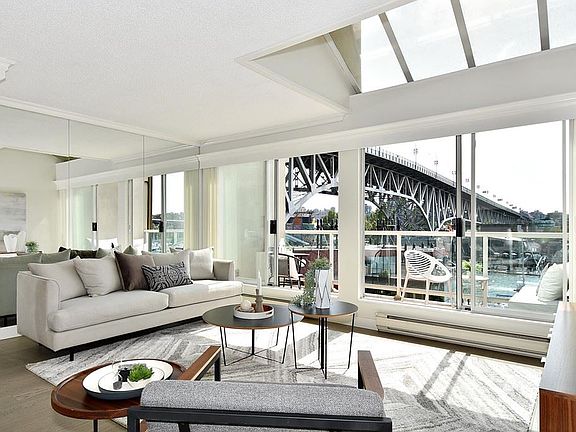Waterfront views to take the cares of your day away. This unique 2 level one bedroom plus office condo at almost 950sf is a rare home. Completely updated and ready for you to move in and call home. One block from the new Vancouver House this condo offers the peace and serenity that the larger complex's can't as it sits directly on the boardwalk. Bright, large open floor plan plus large 107sf deck. Add to that, LOCATION LOCATION -it's close to shopping, restaurants, minutes from the beach as well as Yaletown. Need I say more? Come on out and see this fantastic condo.