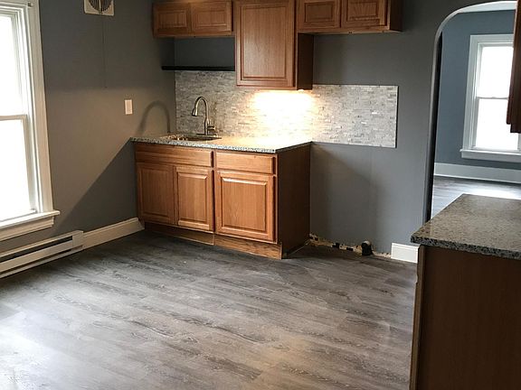 Remodeled 2nd & 3rd-floor apartment. 2 bedrooms, 1 bath with large living room and eat in kitchen. Granite counter tops and new vinyl wood plank flooring.Off street parking for 1 car or 2 if you don't mind one being blocked in. Washer & dryer hookup in basement. Nice size yard. Comes with new stainless Stove, microwave and refrigerator. Owner pays for Trash only