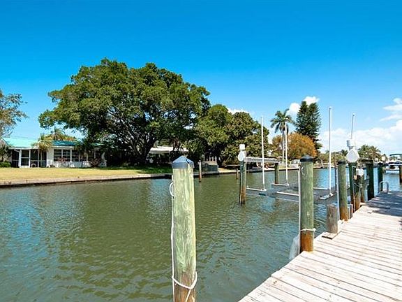 If you're looking for a home on a deep-water canal with no bridges to the bay for your plus-size boat, check out this property, which boasts a 20,000-pound boat lift on a 70-foot dock along a 99-foot seawall. It's also pretty close to the Gulf for a waterfront Holmes Beach property, right in the middle of an area where lots of mid-Florida folks have enjoyed their 'Beach Houses' for many years. With tile floors throughout, new windows and/or hurricane shutters nearly everywhere, and classic styling, it's ready for those special touches that make a house a home. A split floor plan makes it easy to separate guests or young family members from the owners' side, and there are lofty ceilings in public areas. Skylights keep it all bright during the day. There's room for a big pool, and you'll find some majestic trees on the property, including a couple of silver Bismark palms and a banyan. There's a one car garage, a carport, curbed circular drive, and two sheds in back. This might be an ideal spot for you and your boat. Come see! It's easy to show, so ask your Realtor to bring you today.