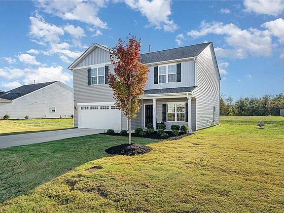 Pristine 4-bed, 2.5-bath home on .91 acres boasting a beautiful open-concept living area with abundant natural light and large island. Main floor includes an office, kitchen with granite countertops, great room and half bath. Upstairs you’ll find a generous primary suite, 3 more bedrooms, 2 bathrooms, and laundry room . Outside there is a 12’x26’ extended patio ideal for gatherings or quiet moments in nature. The large, flat yard includes a shed and plenty of space to run, plus an idyllic garden area with fruit bearing trees! Google home system can convey.
