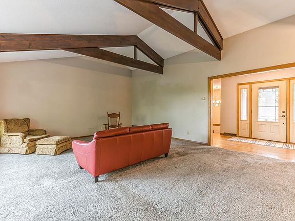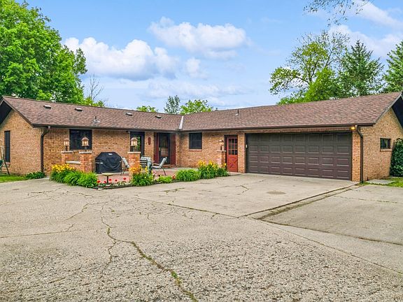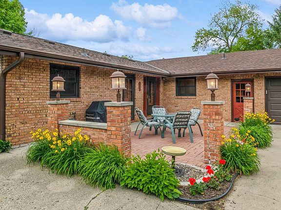 Discover a unique gem in a lovely river town! This home is perched on a hill; country living right in town. Located in the Heart of The Luce Line, it boasts mature trees, perennial gardens, and a charming strawberry and rhubarb patch. Step inside to find huge windows that flood the space with natural light. The eat-in kitchen features newer stainless-steel appliances, and the brick exterior ensures easy maintenance and tranquility. Enjoy peace of mind with a newer roof and HVAC system. The 2-car, heated, insulated garage is perfect for cold winters. This home showcases a popular mid-century design, recognized as a five-star home plan of the year in 1962 and featured in Better Homes and Gardens magazine. The main floor offers a primary bedroom, full bath, and a non-conforming bedroom ideal as a bedroom or home office. Hardwood floors and newer carpet add warmth and comfort. Vaulted ceilings, gas fireplace, large living spaces inside and out! Big laundry room and workroom.