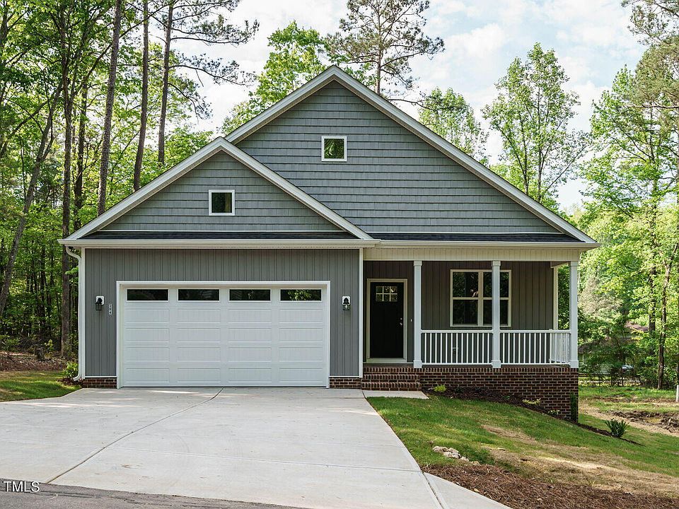Welcome to this COMPLETED new construction one-level home that is ready for immediate move-in. Gorgeous front porch with stamped concrete welcomes you in to this low maintenance home. Lovely foyer area opens to flex space that could be formal living, dining or home office. Open and bright kitchen and great room features gorgeous kitchen with breakfast bar, quartz counters, plenty of cabinet space and a pantry. Kitchen/dining space makes entertaining a breeze. Large family room with gas log fireplace and vaulted ceilings. Primary bedroom has walk-in closet, lovely bath with step in shower with custom tile. Smart laundry room has extra cabinets. Enjoy the outdoors on the fantastic covered porch. Home has luxury vinyl plank throughout — no carpet. Vinyl siding and easy landscaping. 2-car garage! Sedgemoor community offers pool and tennis. Carolina Trace is a gated community that features 2 18-hole courses. Memberships are available for golf, social and fitness. All residents have access to the lake —no gasoline powered boats are allowed. Perfect timing to move in before summer begins!
