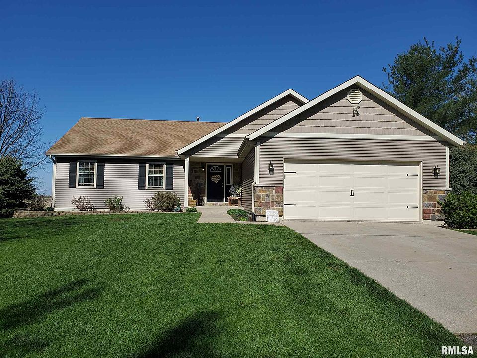 Enjoy the feeling of being on vacation every day in this well maintained ranch home! Efficient & open floor plan with vaulted ceilings, wood burning fireplace, large master bedroom with en suite bathroom, and fully finished basement. Sliding glass door leads to a massive deck overlooking the heated in-ground swimming pool with slide! Rustic barn board outdoor bar with TV mounts along with storage shed complete this backyard retreat. Enjoy rural sunsets over farm fields every evening. Your private oasis awaits!