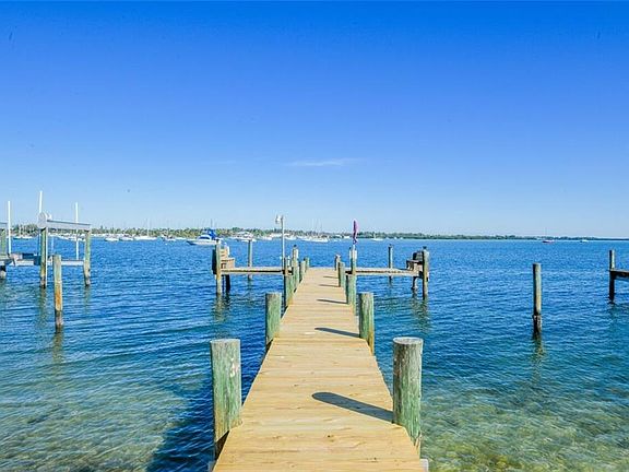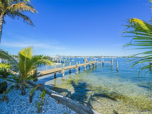 Exceptional views of the Intracoastal Waterway from this hidden gem! Tucked away on a quiet street. Views of the water from every room give you the feeling that you are on a boat rather than land. This unique property offers 4 BR and 2 BT- that can be used as two separate apartments each with its own kitchen & living spaces. NEW, deep water dock to keep your boat or to fish and relax. Perfectly situated just a short block (1 minute walk) to the beach. Spectacular views of the Cortez Bridge, Historic Bridge Street Pier and Clock Tower. Watch gorgeous sunrises or twinkling lights at night. Updated kitchen downstairs with solid surface counter tops & stainless appliances. The open bay-side deck and lower level patio are great entertaining spaces. Selling with some basic rental furnishings (Antiques do not convey). New A/Cs installed in 2018. New roof 2017.