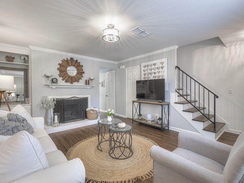 Welcome to this charming 2-story townhome, offering a blend of modern updates and cozy features! The open floor plan seamlessly connects the living spaces, creating an inviting ambiance. The living room, complete with a cozy fireplace, flows into the eat-in kitchen, where you'll find sleek stainless steel appliances and stunning quartz countertops. The spacious primary bedroom offers direct access to the bathroom, enhancing convenience and privacy. Step outside to the deck with a privacy fence, where a dedicated storage building provides extra space for your needs. With green space behind the property, enjoy a peaceful, private setting right at your back door! 4 miles to downtown Franklin, 1 mile to Cool Springs! $2,500 incentive to qualified buyers with preferred lender
