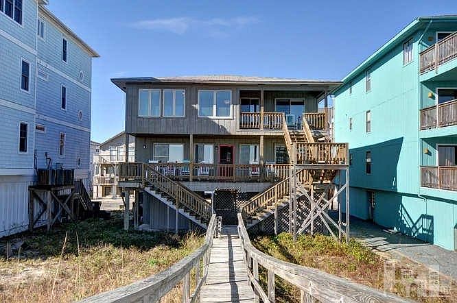 Ocean front, two unit home. NO HOA dues! Loads of covered parking. Experience the serenity of the fragrant breezes along with the sights and sounds of ocean front living. Great investment opportunity! Live in one and rent the other OR rent both! Each fully furnished unit sleeps 12 and consists of 4 bedrooms, 2 full baths, laundry, open kitchen and living room, private outdoor showers and the shared private boardwalk to the beach. The top unit also has a nice sunroom. Enjoy breath taking sunrises, dining alfresco and the seasonal weekly fireworks display from the sprawling covered porches that each unit offers.