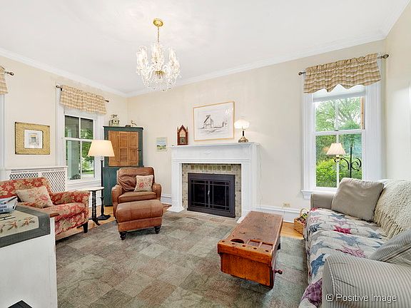 Vintage farmhouse beauty in the heart of town, admired by many who pass by. Owners have expertly kept intact the original charm of the era while making well-chosen updates/upgrades for comfort and design. Spectacularly landscaped 1/3 acre lot must be seen to appreciate! Large portico and wrap-around screened porch lead to welcoming foyer and greeting room beyond. Quietly gracious spaces are highlighted by 10' ceilings, tall windows, maple floors, 11" baseboards and crystal chandeliers. Comfortable living room with gas fp. Vaulted family room with access to east and west porches and yard. Family-size formal dining room and updated farmhouse-style kitchen with breakfast bar & new appls. Master bedroom has a room-size walk-in closet plus private luxury bath. Sweet clawfoot tub in hall bath. Spacious main-floor bedroom/office, full bath and main floor laundry. Upgrades to elec, plumbing, etc. Plenty of storage in bsmt. Newer patio gazebo. 2.5 car gar. Walk to train, parks, schools. A gem!