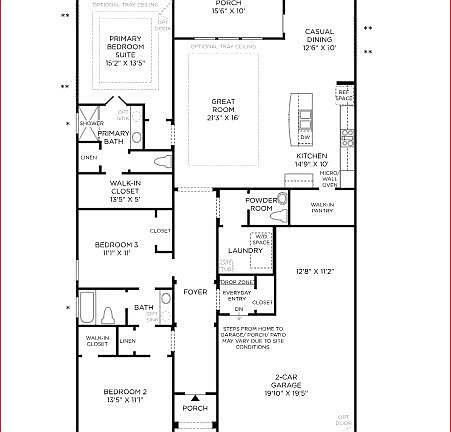 The Madison's inviting covered porch and welcoming foyer open onto the beautiful great room and views of the desirable covered porch beyond. The well-equipped kitchen features a center island that overlooks the spacious great room and adjacent dining area, plenty of counter and cabinet space, and large walk-in pantry. The marvelous primary bedroom suite is complete with a sizable walk-in closet and deluxe primary bath with glass-enclosed shower, linen storage, and private water closet. Secondary bedrooms offer ample closet space and a shared hall bath. Additional highlights include a convenient drop zone, coat closet, centrally located laundry, and garage workshop/storage space.