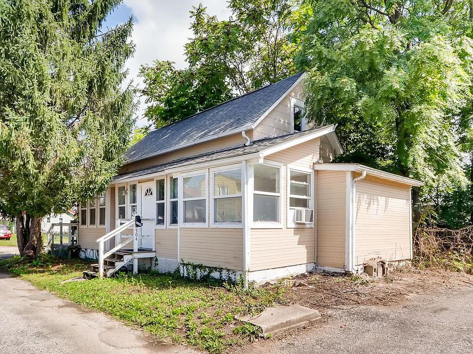 This quirky home sits on the back of a lot that was sub divided. Students love it for its uniqueness. There is a living room, bedroom, eat-in kitchen, full bath and laundry on the 1st floor. Upstairs are 2 bedrooms and a 1/2 bath. Off street parking for 2-3 cars. Perfect for owner occupied or rental. Property is on a crawl space and needs structural support in crawl space. Sold as-is.