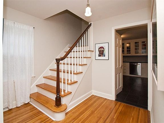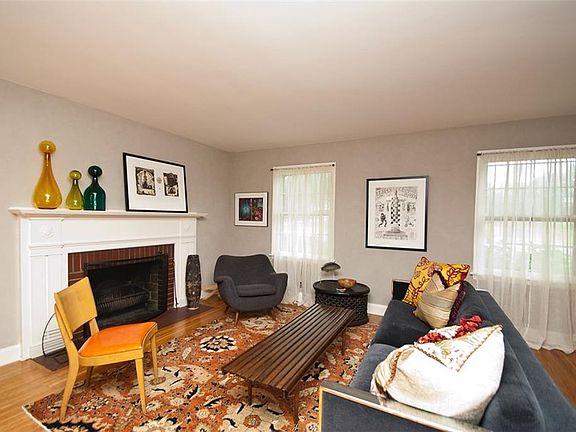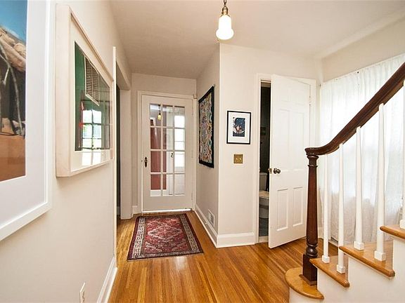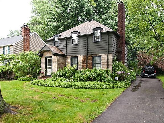 Tradition meets cosmopolitan sophistication in this charming home situated on a double lot with mature trees and gardens. Totally turn-key and updated for the modern buyer. Recently refinished hardwood floors throughout first floor. Dining room open to living room with wood burning fireplace. Remodeled eat-in kitchen has custom made cabinetry, honed slate counters and slate floor. All marble bath completed in 2014. 1st floor half bath. 3 bedrooms all with hardwood floors and ample closets. Finished lower level adds living space. Mechanically sound and well-maintained!