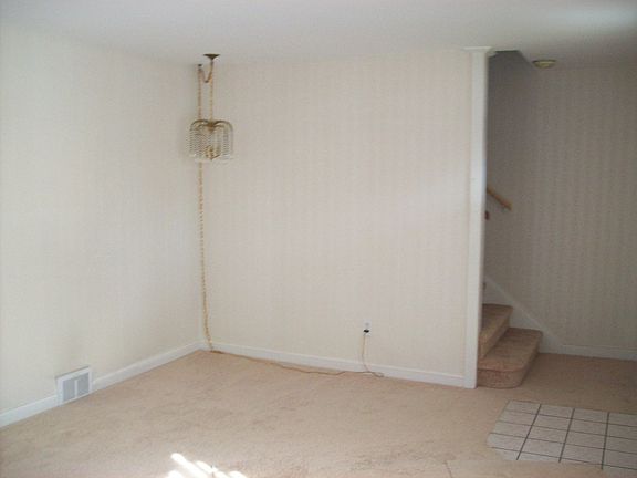 Living room with newer carpeting, formal dining room with chair rail, eat-in kitchen with newer floor and over looks family room, family room has door to covered rear patio,laundry room with lots of storage and powder room all on main level. Upper level has master bedroom and 2 other good size bedrooms and hall bath.freshly painted thru out, all replacement windows,new wall to wall carpeting, basement also painted.