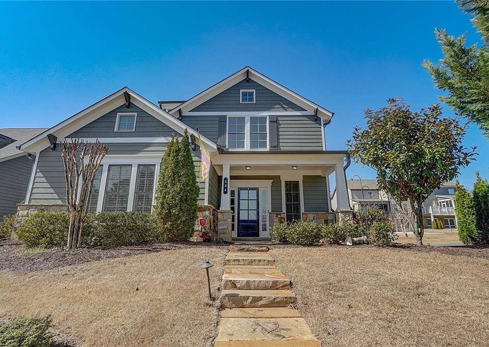 This stunning home in the gated community of Smyrna Grove features 4 bedrooms, 3.5 baths, and an open concept layout. The primary bedroom is located on the 1st floor for easy living with a luxury spa bathroom fit for a king or queen! The oversized family room is great for entertaining, while the gourmet kitchen is a chef's dream with high-end appliances including a double oven for all those special treats and baking goods and plenty of counter space. Enjoy the new flooring throughout the home. A lovely, screened porch with a cozy fireplace awaits you for your enjoyment on those cool winter nights or hot summer days. Custom closets can be found in every bedroom, providing ample storage space. The second floor loft provides additional living space, perfect for a playroom or office or both since it's very spacious. The owners thought of everything for this home and ensured there was additional storage in the potential office area on the other side of the loft leading into the upstairs bedroom quarters. You will find 3 additional bedrooms (one has its own bath) perfect for the kids or guests to enjoy their individual spaces! Don't forget to check the fenced backyard which is perfect for those family barbecues and just hanging out. Too many upgrades to point out. This one is a must see and won't last long!