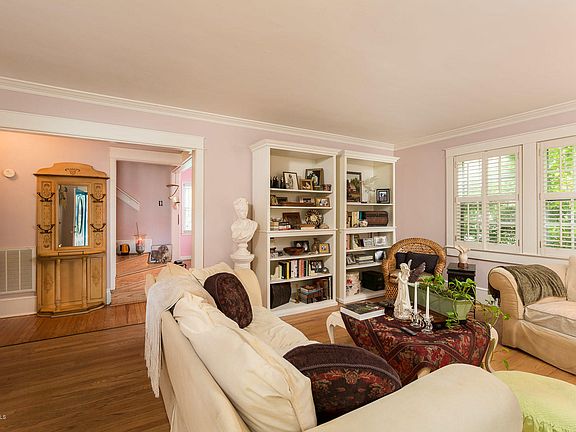 Adorable bungalow on quiet well established street. Welcoming front patio and landscape. This home boasts wood floors that greet you and follow throughout. Spacious family room offers fireplace with gas logs. Updated kitchen with great work space and walk in pantry opens to dining area. Plantation shutters. 2nd floor currently used as master suite with office, bedroom and walk in closet (Could be converted back to bedroom) and master bedroom with dressing area. Great covered porch and deck for entertaining or relaxing!