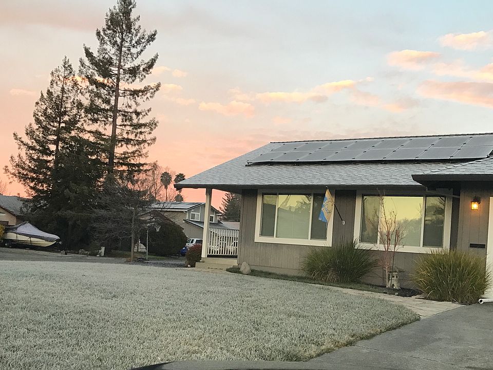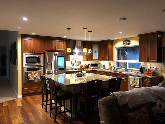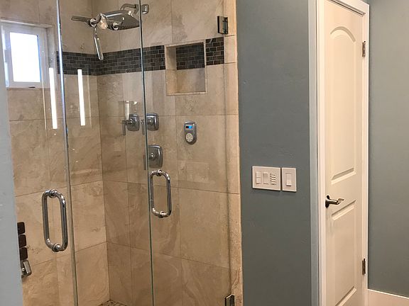 Smart (automated) home with owned highly efficient dual sided solar mounted on reflective 3m cool roof, new paint and gutters. Very large master suite, (gym and sitting area) with walkout to hot tub and patio. Very private with no neighbor windows visible. New 10x 12 master dressing room, plus 2nd walk-in closet bookend a modern ensuite, with steam shower, four headed 6 x 4 foot dual shower with dual modern floating vanities and designer fixtures. Two separate Robern inset lighted Bluetooth capable mirrored medicine cabinets. Master features Automated honeycomb window shades on four double-hung windows and dual two-blade vintage prop ceiling fans. The back entertaining area features a redwood 14' x 14' lit and powered pergola, a top one of the decks is a Hot Springs 7 person hot tub, and the other deck has a built in pizza oven. Aside the RV parking on the side yard is a 12' x 16' outdoor tuff shed. The home has air conditioning and a highly efficient forced air furnace with dual zone thermostat. The large kitchen has modern and designer appliances with unique features throughout. A stainless Pot filler, Viking hood, a 7 foot by 7 foot granite island with a Jenn Aire wine chiller all over Brazilian cherry teak hardwood flooring are a few of the kitchen extras. New in 2018 board on board privacy 8’ redwood fencing all sides with privacy gates, brand new paint, and wired with camera surveillance system 24/7.