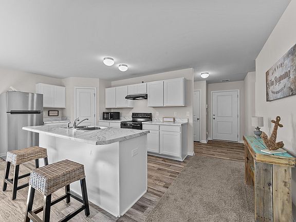 - Features: Breakfast Bar, Kitchen Island, Pantry, Stainless Steel Appliances, Solid Surface Counters