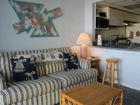Tides Oceanview second floor end unit overlooking the pool. Unit is bright and airy, there is one bedroom with two double beds, galley kitchen with dishwasher and ample cabinets and a breakfast bar. Dining area and nice living room area with sliders to the front deck area. This unit is on the west end of the building and has an ocean view. Central air and forced air heat for year round comfort and oh yes owners are allowed pets. Unit has been well maintained and has a good rental history. Weekly rental rate has been $1100. and currently there is two weeks already rented for the 2017 season. Seller shall continue to rent for next season until unit is sold. Buyer must accept all signed leases already in place. Unit is easily shown off season, on a lockbox.