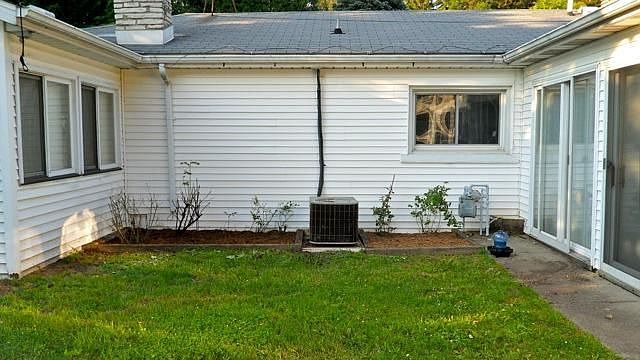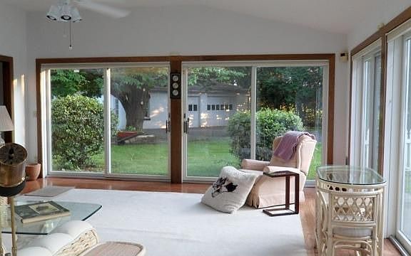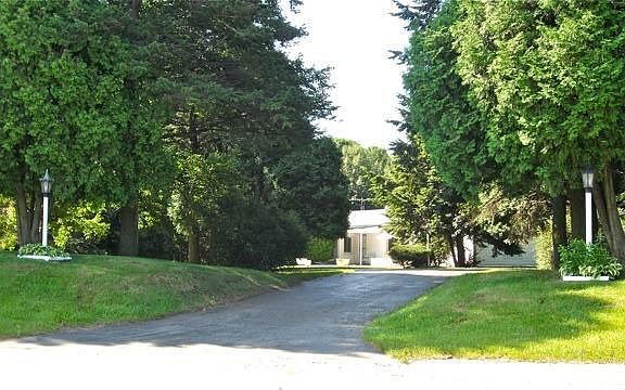 Enjoy tranquil views of nature from every room in this ranch home located on almost five wooded acres. Lush landscape affords complete privacy. This spacious three bedroom two bath home features two exceptionally crafted stone fireplaces. Original period details include sleek retro chrome framed glass block walls and a 30'x16' Carrera white marble terrace. Windows are newer as are the roof, electrical wiring, back-up generator and sunny 22'x28' Master Bedroom which affords 180 degree views of the surrounding countryside. Spacious storage shed and heated two car garage (with ample space for a workshop) offset the use of the 8x8' utility basement. Gutter and roof heaters provide relief against heavy snow fall. Award-winning flower beds and vegetable garden await transformation to original splendor by even the novice gardener!
