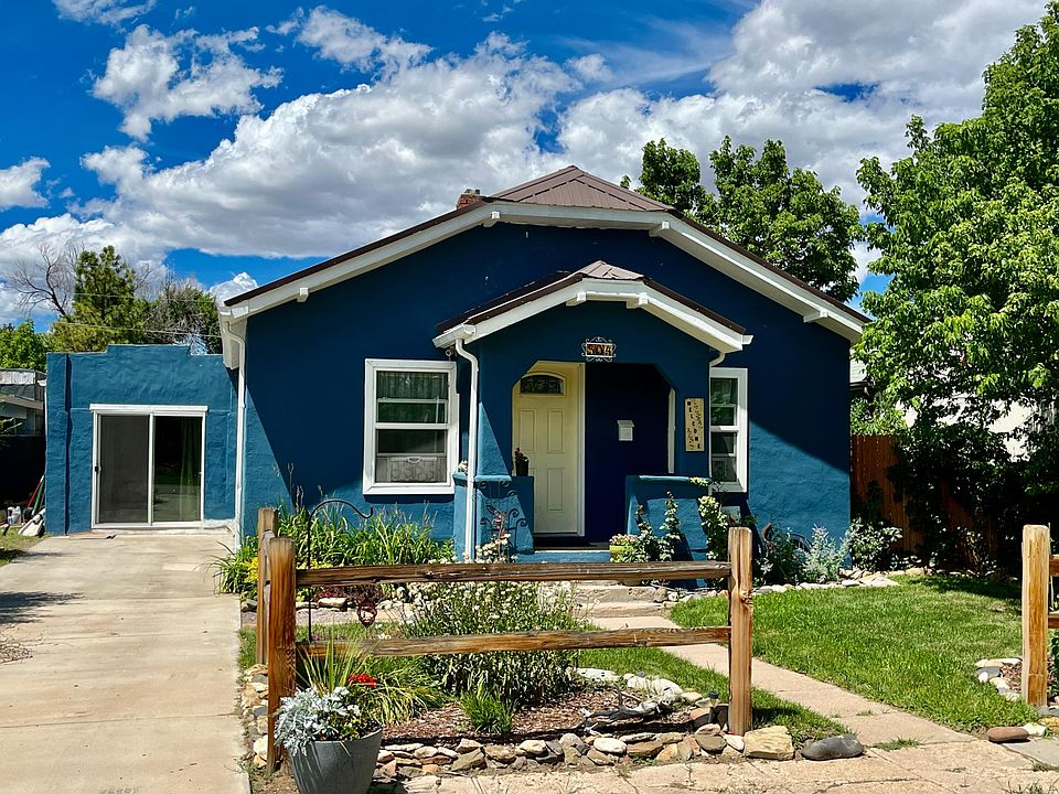 Adorable is the best way to describe this home! The front and back yards are beautiful, with a flourishing garden in the back, flowering plants everywhere, cozy lawns, and low-maintenance rock areas. The backyard is completely enclosed with a privacy fence, creating a cozy, dog-friendly environment enhanced by a charming sunshade. An 8'x10' storage shed stays with the home, and a greenhouse is negotiable. The former garage has been renovated into a roomy 3rd bedroom. The home boasts charming upgrades, including a metal roof, Pella vinyl windows, and dovetail soft close kitchen drawers. The house is situated near the end of East 6th Street, a quiet neighborhood with little traffic. This home is move-in ready, boasting one of the finest yards in town and a garden that is ready to pick!