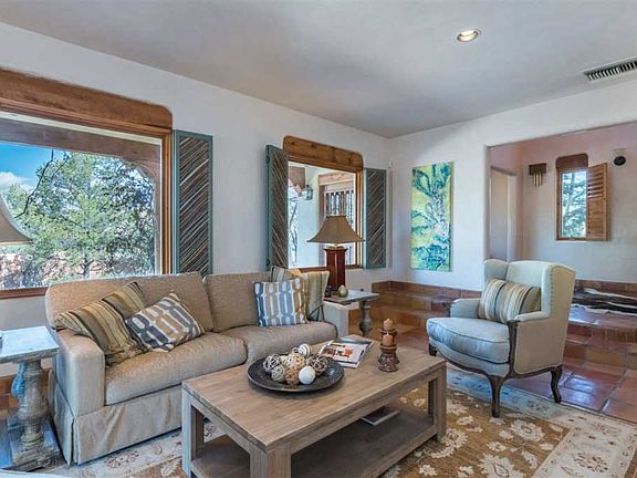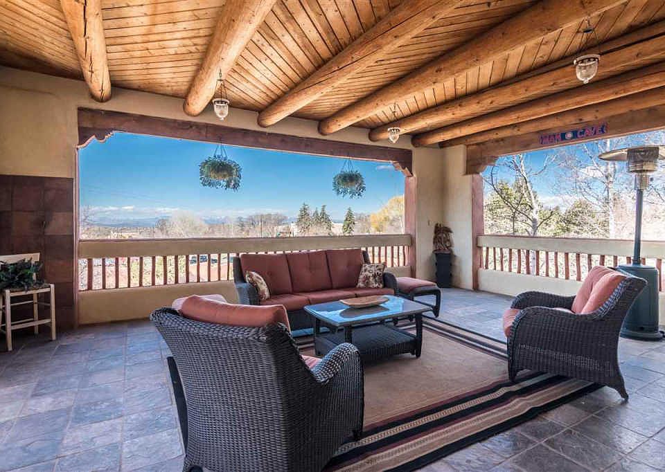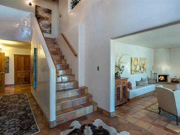 Museum Hill/South Capitol living for under $200 per square foot in a turnkey home with new stucco, new roof and central air conditioning? Unheard of until now. Throw in an income-producing detached one-bedroom, one bath guest house and you have the perfect in-town Santa Fe property, situated on a fenced almost one acre lot minutes from the historic downtown plaza. This highly desirable location near the Museum Hill and South Capitol neighborhoods has the convenience of nearby schools, shopping and medical facilities. Offering sweeping 360 degree mountain views and generous outdoor areas within the walled and beautifully landscaped grounds, this rare in-town property should not be missed. Custom southwestern details include exposed vigas, handmade saltillo tile floors, four kiva fireplaces, diamond plaster walls, custom wood shutters and doors. The 2 car garage has direct entry to the house and an elevator to the second level. Need space and great separation of bedrooms to accommodate your family and entertaining needs? This is the perfect place for that. The 2 levels in the very comfortable and elegant main house consist of a first floor family room and 2 bedrooms along with a full bath. Second floor has a spacious living area that opens into dining room and kitchen, together with a master suite and 4th bedroom with a guest bath.