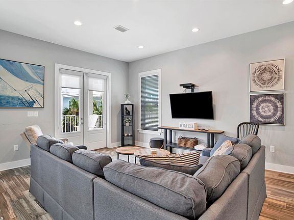 This 3 bedroom 3 bath Gold Fortified home is located in East Point Cottages in Gulf Shores directly across the street from the beach. Location is amazing, you are in the middle of Gulf Shores within walking distance to restaurants, shops and entertainment. Professionally decorated by Mint Decor, this home is a popular rental. $62,000 in 2022! The open living area features elegant beach decor, a dining area, a large, mounted HDTV, and a convenient half bathroom. The Master bedroom on the first level comes with a King bed, HDTV, and private full bathroom with custom tile shower. Bedroom 2 has a Queen bed and private bathroom. Bedroom 3 is a bunk room has two custom built twin bunks beds. This home sleeps 10 and is perfectly set up for the family. Sit on your front porch and watch the kids swim in the pool. The beach is just a short walk away, turn right out of the front entrance and the public access is just a few steps away. New washer and dryer and new microwave.
