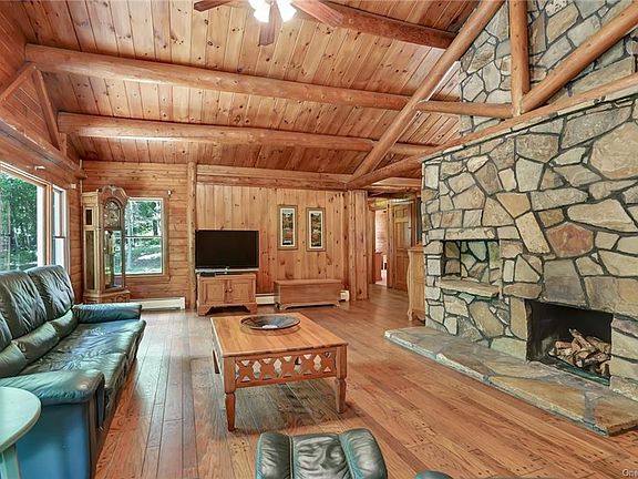 Looking to escape the city... this tucked in rustic log cabin w/horseshoe driveway sits on over 2+ bucolic acres in a state conservation neighborhood. An open floor plan, cathedral ceiling w/exposed beams, wide plank bullet wood floors, and large stone fireplace will make those cold winter nights even cozier. Kitchen and dining area have access to back deck and lower patio area. Master Bedroom w/a Jack and Jill bath on one side and two additional bedrooms and 2nd Master Bath on the other. This home offers full walkout basement (not included in square footage) and potential for mother/daughter, add l family space and/or a weekend getaway. Great for hiking, swimming, ice skating, and scenic drives. Minutes to Boyd Corners Reservoir, White Pond, Canopus Lake, Putnam Park or join the nearby Sedgwood Club a private club offering Golf/Tennis/Swimming. After qualifying for STAR deduction taxes reduce to $13,184.