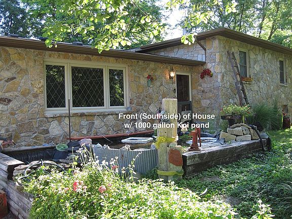 Luxury country living in a small town! This newly updated, energy efficient, beautiful 2300 sq ft rock home is move-in ready and surrounded by roughly 5 acres of mature trees located on either side of a dead-end street in a quiet neighborhood. Built in 1976, this tri-level, 2 bedroom / 2 bath house was purchased from the original owners in 1993 and remodeled in 2011 with new insulation, drywall, windows, electric, and plumbing. The roof was replaced in 2019 and has a solar roof fan to circulate out the hot summer air. There is a wood-burning fireplace with blowers and ducts into the heating/cooling system for the winter. This home has a water softener, attic fan, and central air/heat with an auto humidifier. There is an attached 2-car garage (24’x28’) with openers included. Floors throughout include carpet, tile and laminate. Custom closets are wood and wire. Walking up to the house, there is a welcoming landscaped area with a 1000-gallon Koi Pond (some fish could stay with the house if requested). Once inside the front door, there is a small living room on the way to the state-of-the-art kitchen and great room. Gorgeous and cozy with faux venetian plaster walls and a faux metal ceiling, this room has window seats and a 11.5’ granite bar that seats 8 so visitors can relax by the fireplace as food is prepared in the kitchen. The custom kitchen has beautiful distressed knotty alder cabinets with a black glaze containing lots of slide outs and extras. All of the high-end GE appliances stay with the house which include a double oven, side by side refrigerator w/ freezer on bottom and an ice/water dispenser, dishwasher w/ stainless steel interior, and a garbage disposal. From the kitchen, there are stairs to the finished basement which could be turned into a bedroom if needed. Upstairs (6 steps) is the guest bedroom and master suite (330sq ft) which has a bedroom, walk-through closet, office area and a luxurious bath with a walk-in cultured marble shower and jet tub. The master suite could be converted into two bedrooms if needed. From the great room, there is an entrance to the small fenced-in backyard with a 13’x20’ covered sitting area with beautiful landscaping and a moon gate. There is also a garden/potting shed and a water well. Walking north of the backyard on a lighted gravel walkway, you’ll see a container garden (with gravel to minimize chiggers) that has perennial blackberries, grapes, strawberries and a dwarf cherry tree. Next to the garden is a 30’x40’ 2-story metal shop with 2 garage doors (built in 2014), a finished 14’x15’ room for crafts, photo studio or even an extra bedroom (Heat/Air unit but no plumbing). Just outside of the finished room there is a 10’x30’ overhanging porch facing the medium sized fishpond. A 100-year-old pecan tree and large willow tree allow for some shade and a large swing. The only intrusion to this private space comes from the Purple Martin condos set up by the owner which are completely rented out, with rent paid in a depleting mosquito population to make time spent by the pond more enjoyable. Across the street there is a small barn on the mostly fenced 2.2 acres with a creek running through it. A working well is also included on this side of the property to help keep any animals properly cool and hydrated.
