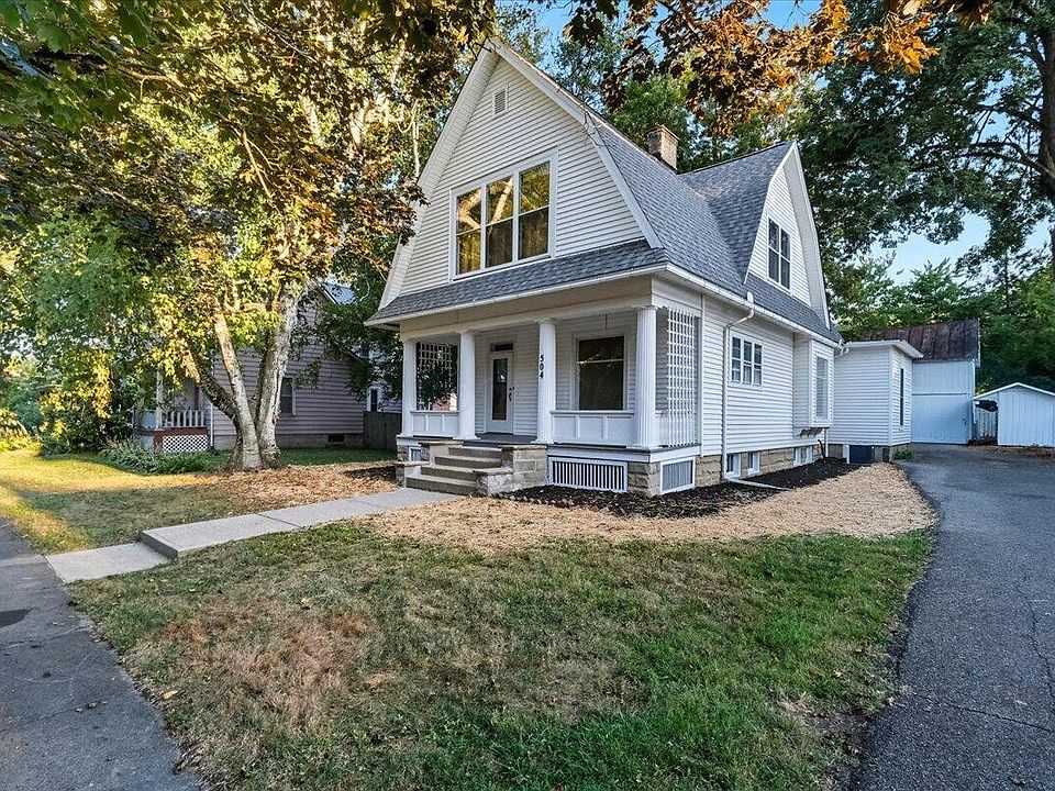 This beautiful east end home has been completely renovated this year. Features refinished natural original hardwood floors, new lux vinyl in baths, kitchen & one bedroom, Oak kitchen with new counter tops new stainless steel sink, faucet, New dishwasher & range hood, Fresh paint throughout the house, 2 completely new baths, almost all new wiring, new light fixtures, 3 large bedrooms on the 2nd floor all with walk-in closets & hardwood floors, 1 main floor bedroom with full bath &walk-in closet, dining room with built-in china cabinet. Foyer with beautiful original all natural staircase, Very nice basement that could be used as a family room or exercise room, New roof Aug 25, 2025 with 50 year shingles & the warranty will transfer to buyer, 2 story barn/garage has room for one car and has a very nice workshop with heat & electric but the workshop can be removed so you can park another car in the garage, 6x10 storage shed has new roof also. The exterior trim on house, porch, garage & shed have all been painted & so much more. Call today to make your appointment to see this beautiful home before it is gone!