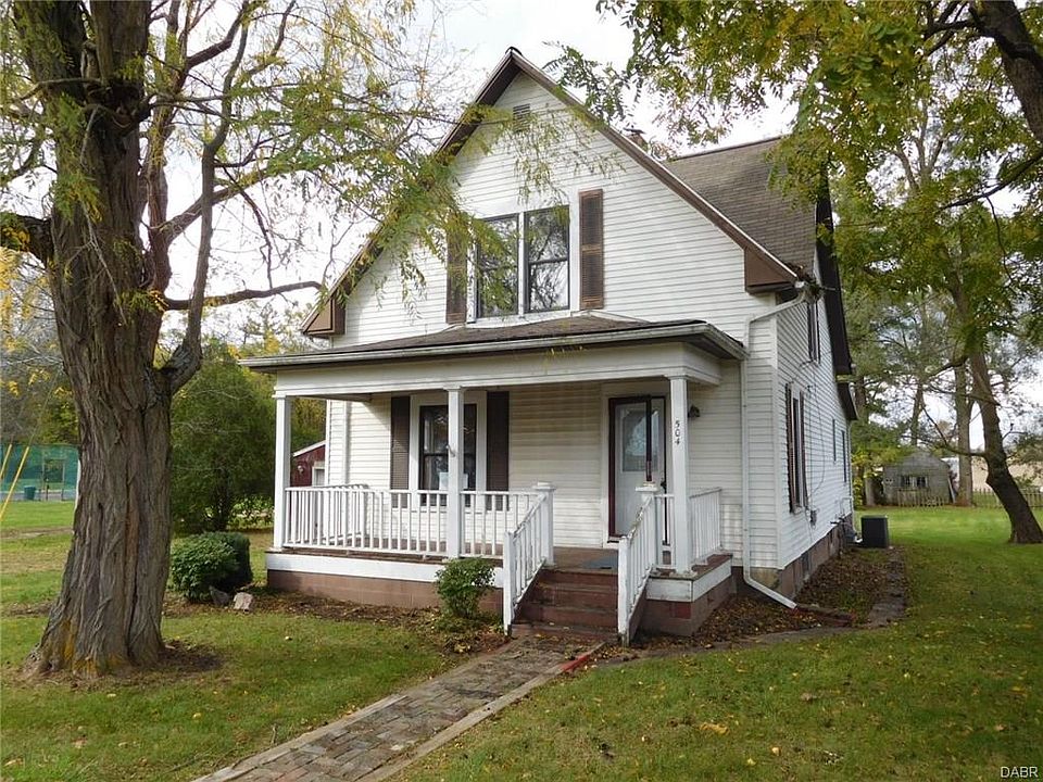 Charming 1.5 story home. The main floor features high ceilings, lots of nice woodwork and wood floors. Large living room, dining room and kitchen. First floor laundry/utility room. Covered front porch and rear deck. 2 car detached garage. Needs your personal touch to make it shine again. Room sizes are estimated.