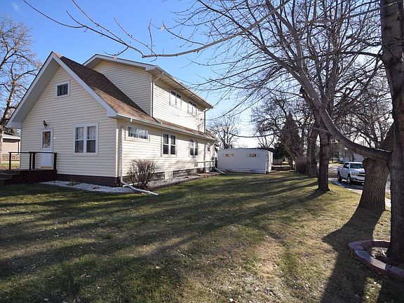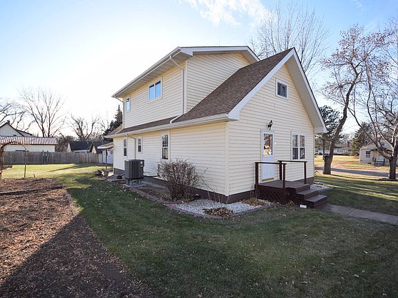 Well-maintained 1 1/2 story home located on a large corner lot in Sisseton, SD. The home has 5 bedrooms, 2 full baths, 1,632 square feet of living space and an unfinished basement with 912 square feet of space. Two bedrooms and one bath on main floor, the upstairs features jack and jill bathroom and three bedrooms. The property sits on a 132 x 125 lot, has a 30 x 40 detached garage with heated workshop area, tar alley to garage and 8 x 8 shed. Asphalt shingles forced air heat (new heat pump and propane back up) central air, appliances included, Anderson Windows, covered concrete patio. An older double wide mobile sits on the property and is currently being used as storage.
