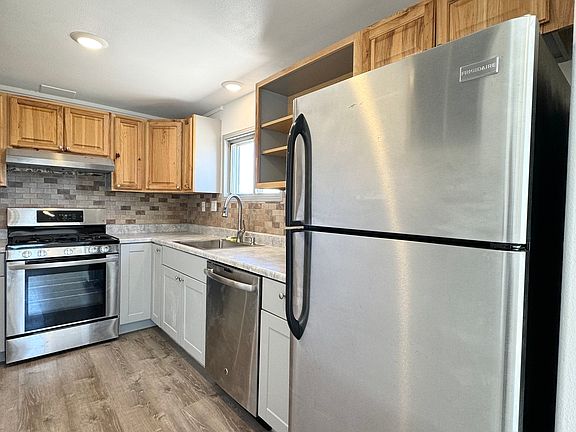 Remodeled 2bed 1 bath house on a large lot on Trilby Rd. Vinyl plank floorings throughout, stainless steel gas oven/range, refrigerator and dishwasher. New kitchen lower cabinets, bathroom shower, toilet and vanity. New paint throughout. Property is zone Residential/Commercial, so there is an option to run a business out of this property with additional rent and lease terms. Option to park an RV on site for an additional $100 per month. *Type/Style: Ranch *Year Built: 1979 *SQ FT: 950 *Appliances Included: refrigerator, oven/range, dishwasher, window coverings *Laundry: washer/dryer hook-ups *Misc Items Included: Large lot with fully fenced backyard *Tenant Responsible Utilities:. Gas, Electric, Water/sewer, Trash *Snow Removal/Landscaping: Tenant Responsible *Parking: Off street, no garage *Recreational/Commercial Vehicle Storage: are allowed with additional $100 fee per month *Heating/Cooling: forced air/ Wall AC This property does not allow pets Lease to end 6/30/2024 with option to renew. Property is zone Residential/Commercial, so there is an option to run a business out of this property with additional rent and lease terms. Option to park an RV on site for an additional $100 per month.