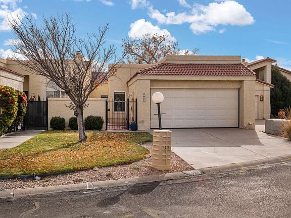 Discover comfort and convenience in this charming 3-bedroom, 2-bath townhouse located in The Islands, a desirable 55+ gated community in Rio Rancho. Enjoy stunning Sandia Mountain views from the expansive covered patio, perfect for relaxing or entertaining. A welcoming private courtyard leads into a spacious family room featuring a cozy gas fireplace. The open kitchen and dining area offer raised-panel oak cabinets, stainless steel appliances, and a convenient wet bar, creating an ideal space for everyday living and hosting guests. The large primary suite includes a generous walk-in closet and a full bath for added comfort. Residents enjoy easy access to the community park and tranquil waterfall, adding to the peaceful ambiance of this sought-after neighborhood.Priced to Sell!!!