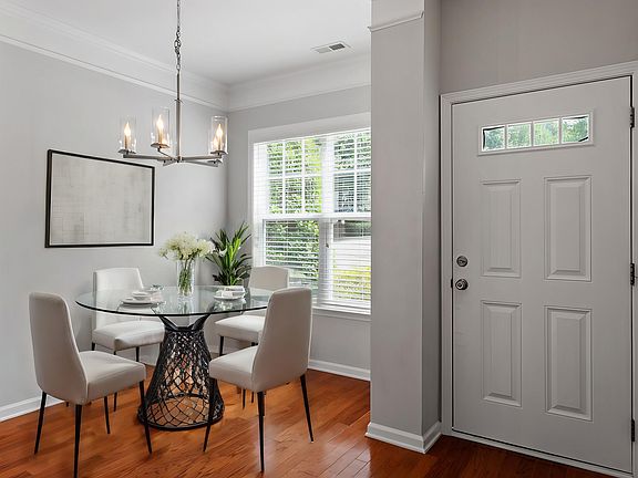 Amazing location 2 blocks from downtown, neighborhood park with trails and less than 1 mile to seminary. Beautifully updated former model home conveniently located near downtown Wake Forest, shopping centers and dining areas. Main level of the house features hardwood floors & newer carpet upstairs. Kitchen boasts granite countertops & island, pantry, and newer stainless-steel appliances, including a refrigerator. There is a separate dining room and a family room with a corner gas log fireplace. First floor office & a third-floor bonus/bedroom. Primary suite has a private bathroom & a walk-in closet. New roof 2023. Washer & dryer included. The private patio in the fenced yard overlooks the woods.