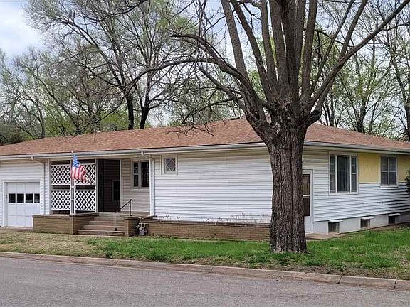 Don't miss your chance at this gorgeous vinyl-sided ranch! This home is located on an oversized corner lot not far from downtown Mulvane, schools and the MRC! Upstairs features hardwood floors, 3 bedrooms, dining area, and main floor laundry! The basement boasts an outside entrance, kitchenette, bathroom, living room, and 2 bonus rooms. Outside you'll find the 2 car detached garage is linked to the home by a covered patio area. The large backyard is fenced and provides an additional storage building. Schedule your private showing today!