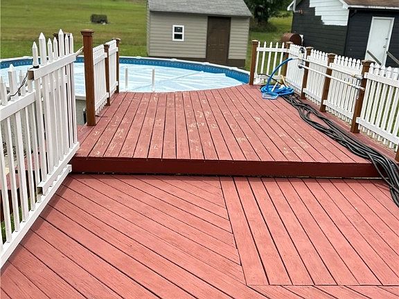 Move right into this home. Features two bath rooms, 4 bedrooms and custom kitchen cabinets. two hot water tanks, extra room above the garage. Also enjoy the above ground pool and deck.