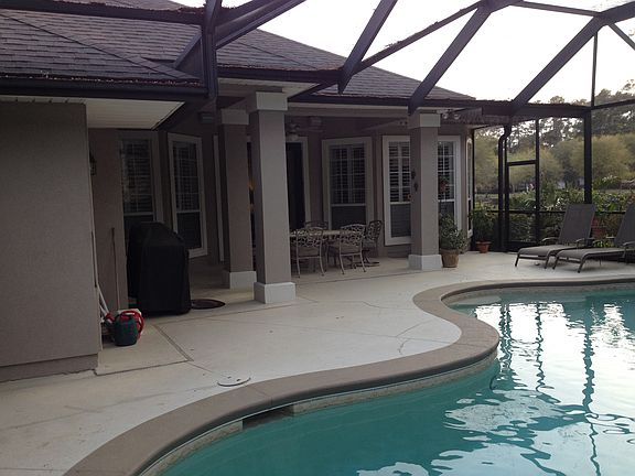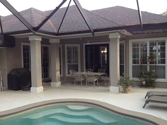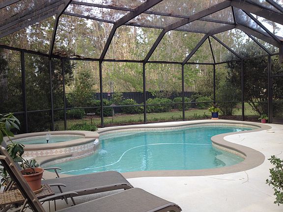 This home has it all and is MOVE IN READY!!! Rare opportunity to live in a meticulously cared for POOL home located in The Woodlands at PV. This Dostie home sits on a more private lot next to lake. Home features a spacious open floor plan to include hard wood floors in living areas, carpet in the bedrooms, arched doorways, wainscoting, a wet bar, large eat in kitchen, gas fireplace, built in shelving, walk in master closets, planation shutters throughout, side entry garage, and a gorgeous screened in pool and spa!!! The Woodlands in PV is a family friendly community with only 44 homes. Generous lot size of .34 acres and mature trees throughout the community.
