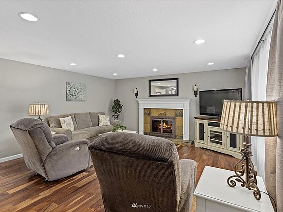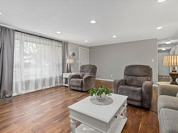 Step into your tastefully remodeled Rambler that boasts hand scraped acacia hardwoods throughout, solid interior doors, custom lighting, and new counter tops to accent your galley kitchen. Dining off the living room, generous sized bonus room filled w/natural light & its own exterior entrance to step outside onto the oversized deck with plenty of space for your outdoor enertaining. Garden beds & other mature landscaping creates a very private settting to enjoy. Bonus exterior room with private entrance to use as an office, studio space or ignite the hobbyist within to create a crafting room! Large outbuilding for storage, plenty of parking and room for your big toys. Close to all amenities and only 10 min to 1-5. MOVE IN READY!