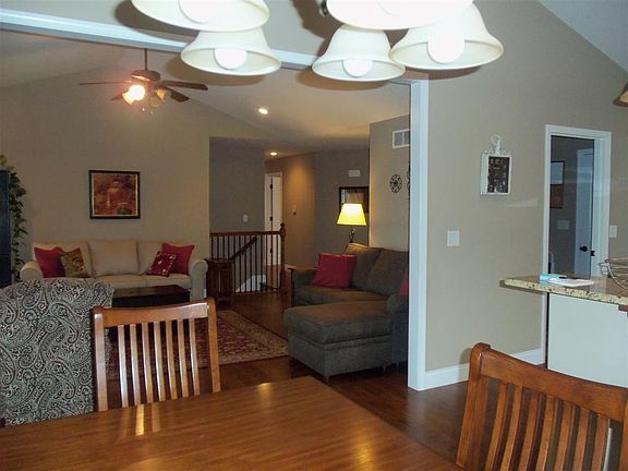 Open floor plan with large bedrooms, bright living space and endless possibilities in the full basement. You will definitely love the granite counter tops, stainless appliances and updated fixtures in the kitchen that includes a double oven the owner does not want to leave, but will. The amenities are endless with a sunroom the owner lives in, beautiful hardwood flooring, vaulted ceilings in kitchen, sunroom, living room and master bedroom. Stepping into the back yard, you will love the privacy of the vinyl fencing and the pergola covered patio.