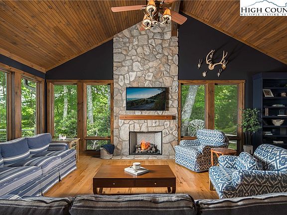 DREAM HOME ALERT! Everything you’ve been looking for - Grandfather View on 10 Acres in Blowing Rock!! Priced To Sell and Fully Furnished! Ultimate convenience to town, plus mature woods for privacy and total view control. Create hiking trails in your own backyard, listen to the sounds of Tweetsie Railroad, and drive only 3 miles to Main Street, Blowing Rock. Built in 2013, this home was designed ahead of its time. Floor to ceiling windows revealing a Grandfather view, a vaulted T&G ceiling in the great room, stone accents around the fireplace and gas range, open concept living/kitchen/dining, full wetbar, clever cabinetry, and FOUR bedroom suites! Enter through the elegant porte-cochere and intimate foyer, where all of your one-level living necessities await including a half bath and laundry area. The primary suite features the majestic Grandfather view and organized spaces such as the walk in closet, vanity, shower, and water closet. Downstairs, you will find the other three bedrooms each with their own en-suite bathrooms, a second laundry room, and access to your park-like setting backyard. You will love the amazing location, unassuming entrance, and the drive through Hearthstone Creek community. Find your home at the end of the road, tucked away like a secret mountain getaway should be. The POA is planning to re-pave the community roads in 2026, special assessment paid by the Seller. Minor furniture exceptions. This home has been meticulously maintained and pre-inspected.