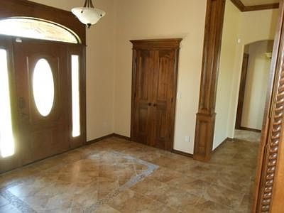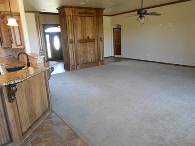Like new throughout. 4 year old property located on .7 acre. 4 car garage. 2 covered patios. Side entry garages. 2 1/2 baths plus an additional 1/2 bath in garage. Concrete, above ground safe room in garage. Utility room is over sized with additional cabinet storage space. The open kitchen, dining and very large living area is ideal for family and entertaining. Formal dining area has easy access to kitchen and space for large dining room furniture. Master bedroom closet is big-14.5x14.1