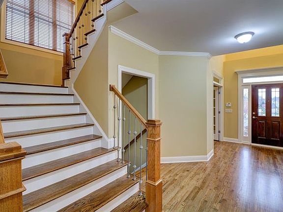 - Interior: 10 ft+ Ceil Main, 2-Story Foyer, Double Vnty Other, Entrance Foyer, Trey Ceilings, 9 ft + Ceil Lower, Bookcases, Disp Attic Stairs