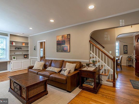 This classic, updated Stoneleigh Center Hall Colonial will check a lot of boxes for your Stoneleigh home search! Updated, eat-in kitchen with granite countertops, stainless appliances, CAC, new high efficiency furnace, 4 true bedrooms, and a comfortable finished basement space, recessed lighting throughout, The main level offers a large living room w/ wood burning fireplace & built-in bookcases, the traditional, formal dining room, and the side porch is fully finished and a great extra space for a den/office etc. Upper level 1 offers a large primary bedroom with an ensuite bath, 2 bedrooms and a comfortable hall bath. Upper 2 is a huge fourth bedroom and is accessed from the hall (not a walk through). Lower level is nicely finished, with recessed lighting, a half bath and hobby room/ mud room. Walk out basement to a wonderful, private. fenced level yard.