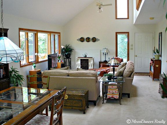 Centrally located! Sellers will pay up to $3500 buyer closing costs!!! Lovely home on 1.4+/- acre park like lot. Main level features a spacious great room w/huge picture windows to admire beautiful setting, a possible master bedroom (currently used as an office)w/bathroom en suite,a well maintained & efficient kitchen with updated SS appliances opens into LR space. Upper story has two good sized bedrooms with jack & jill bath. Full basement w/finished family room, half bath & laundry room plus great workshop space w/separate access to the backyard. Tons of storage,oversized carport,generous sized deck & energy efficiency add to positive attributes. Common areas & easements guarantee privacy.
