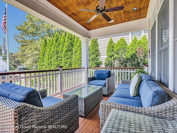 Ipe wood floor, flanked by Gas lantern lights adding to the charm. Enter through the Mahogany front door to a family room with gas fireplace, decorative molding, French doors with open floor plan to incorporate the kitchen with a large granite center island. The kitchen is a chef's delight with breakfast nook overlooking the backyard.There is a formal dining room and living room for special occasions that make this a home for all seasons. A mud room customized with lockers to go to and from the beach without a fuss. A full bath on first floor as well. 9 ft ceilings and Sonos sound add to the amenities. The second level has a beautiful master suite, with French door to private deck, sitting room with HIS closets, and a master bath with Jacuzzi, oversized shower stall all onyx stone and marble floors and Her Closets. 2 additional bedrooms , full bath