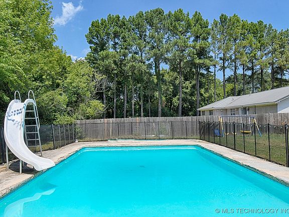 Spacious 4 bed, 3 bath home with a gorgeous 35,000 gallon inground diving pool with a water slide in a nice subdivision in Muldrow! The seller's have invested over $5,000 into paint and security fencing with a key for around the pool. The kitchen cabinets have been freshly painted, the sink, dishwasher, range hood and garage door opener are only a year old and the deluxe refrigerator only 2 years old. 2 of the bathroom sinks are new. There is tons of storage throughout the house plus additional storage space available in the attached 2 car garage area and in the attic space. The bonus room can be used as storage, an office, playroom or hobby room. Outdoors in addition to the pool you will find a covered patio, an above ground garden and a storage building. Don't miss out on this great find. Motivated sellers! Schedule your private showing today!