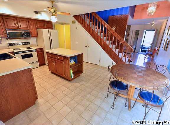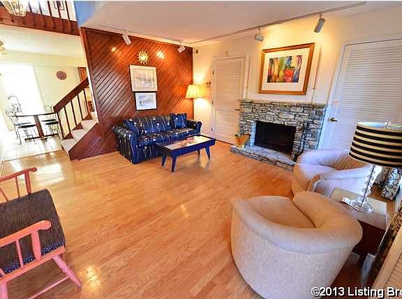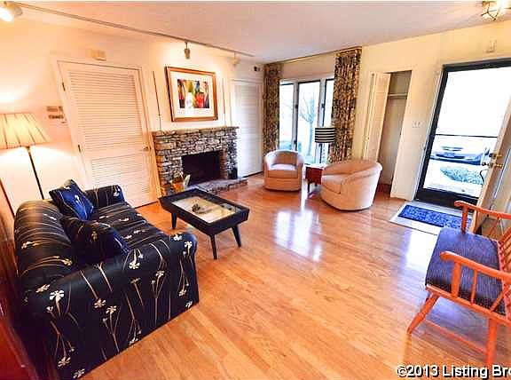 Spacious, Hardwood Floors and across from the Pool and Tennis Courts! This 2 bedroom 1.5-bath townhouse has more living space than most of the condos in Crescent Springs thanks to an additional large family room (that can also be used as a bedroom) off the kitchen that features a built in book case and skylight! The condo also offers plenty of windows, a sliding glass door to one of two decks and lots of light. The living room features true hardwood flooring, a working Creek Stone fireplace and a beautiful view of the park/deck/ pool across the street. There is tile flooring in the kitchen and baths and the large eat-in kitchen (see pictures), also has upgraded cabinets and movable center island. On the 2nd floor a large loft bedroom (but a wall can be easily built to turn this into a traditional bedroom), and a Master Bedroom with that second deck. Washer, dryer, and all appliances, as well as security system, remain with home. The community was built in a former rock quarry and is beautifully maintained with landscaping and beautiful rock walls. Crescent Springs is within walking distance from all the attractions on Frankfort Avenue. This condo is in the quiet interior of the community and also features an outside attached storage area. Maintenance fee covers water, snow removal, pool, pest control (interior and exterior), landscaping, building maintenance and master insurance.