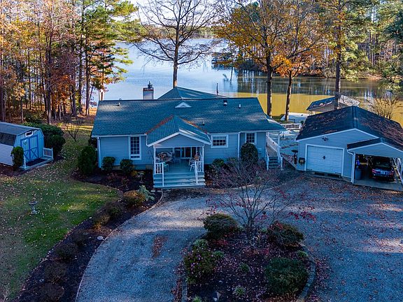 Beautiful views of Lizard Creek-Lake Gaston Cottage. Over 200 ft of waterfront, .67 ac level lot. You will love this property from the second you drive up the circle driveway! When you walk into this home the view will draw you in to the wall of windows overlooking the lake & lg great room..3 br, 2 ba one level living w/gas fp. The kitchen is equipped w/ ss appliances, solid surface countertops, pantry & side entr. Gas range & dryer All the hard work done in recent years, incl roof, siding & HVAC. The bathrooms have been updated too! Master w/ water view, walk-in closet & private bath. Single detached garage & carport with built in shelving & bonus space that was used a bunk room/play room. More storage in the shed on the other side of the house. Home is already wired for Spectrum internet! Close to shops & restaurants. Everything you need for your perfect Lake Home is right here!